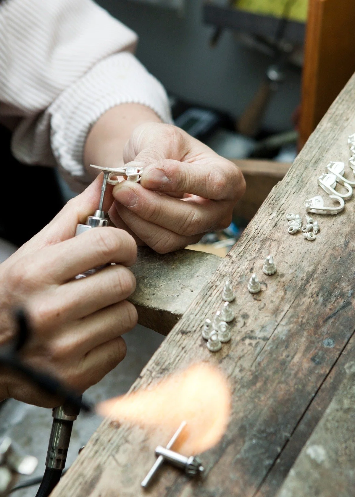 Carousel: Photos capturing the different stages of the jewellery-making process.